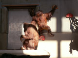相棒のはずのジェフロイクモザルさんは室内でぬくぬく~♪