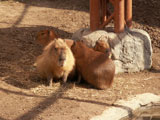 カピバラさんたちはなんだか寒そうにじっと固まっています。