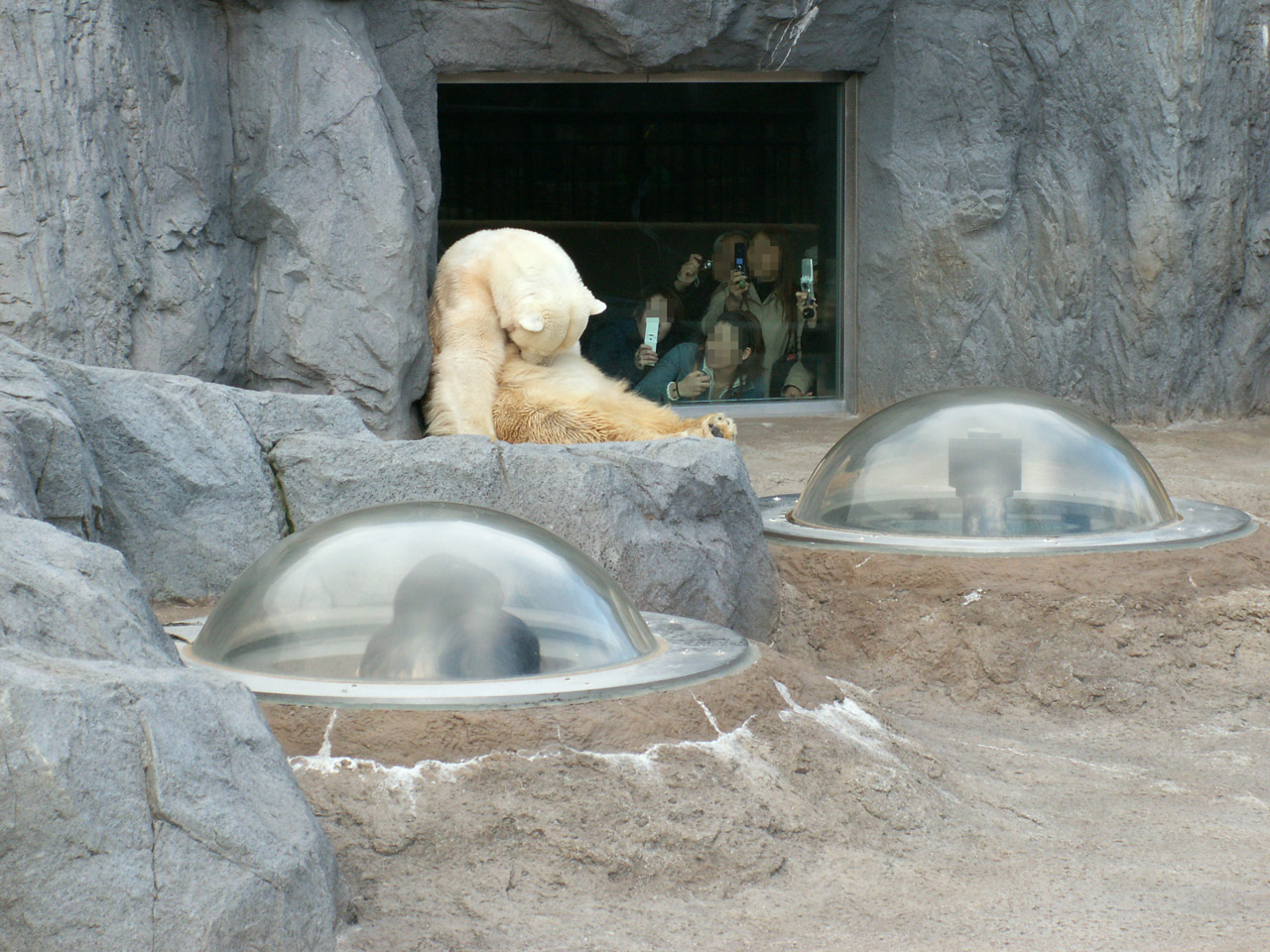 ここの人気は間近でホッキョクグマさんを見ることができる小さくて透明なドームです。