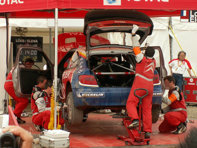 サービスパークは各車の整備が行えるところで、競技期間中は各車日が昇ったばかりの時間にここを出発し、あちこち走り回った後お昼に整備に戻ってまたすぐ出発、夜遅くに戻ってきてまた整備するのです。