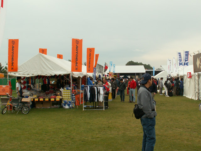 各自動車メーカーや関連ショップ、ローソンなどがテントを立ててさまざまなものを販売したり展示しているです。